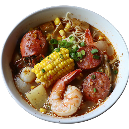 Crab legs, shrimp, corn, potatoes, smoked turkey sausage, in a seafood broth